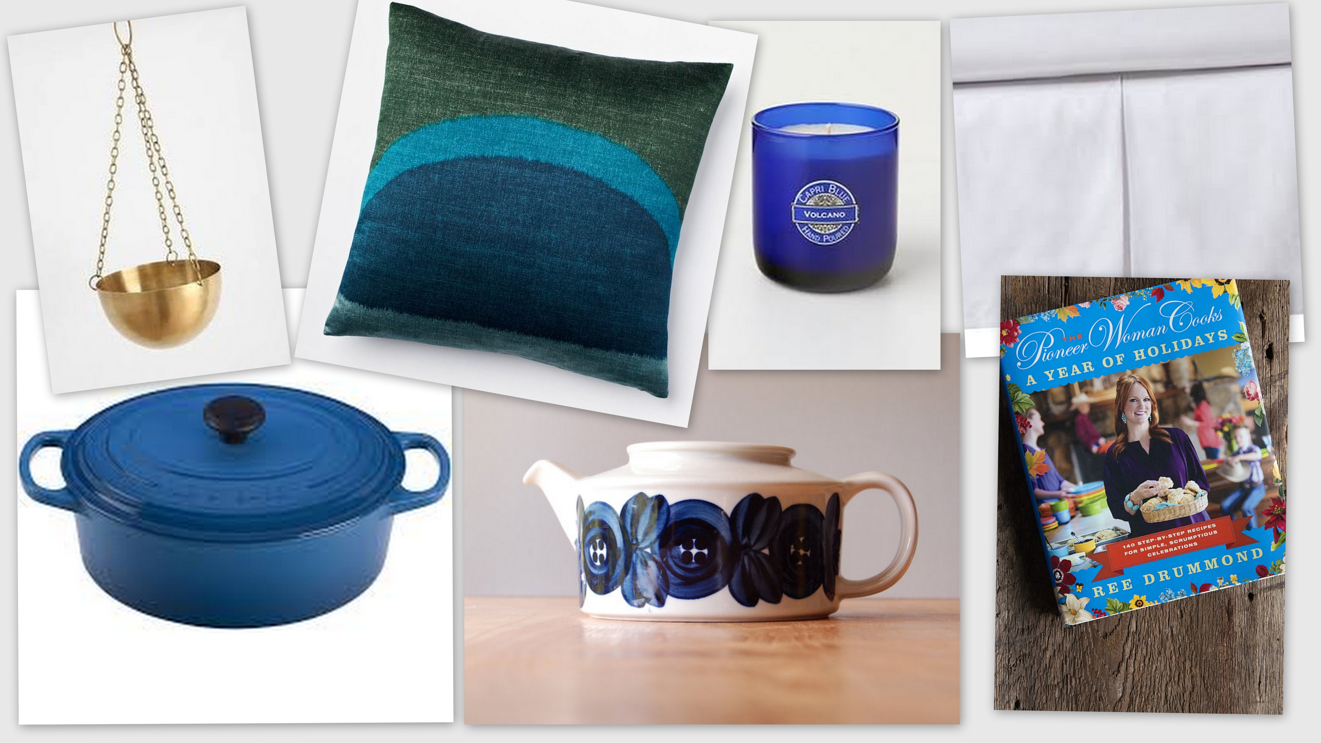 teapot $35/cookbook $25/pillow $39/queen sheet set $35/brass planter $12/bed skirt $16/french oven $175 via homegoods or le creuset outlet/any candle from anthropologie
