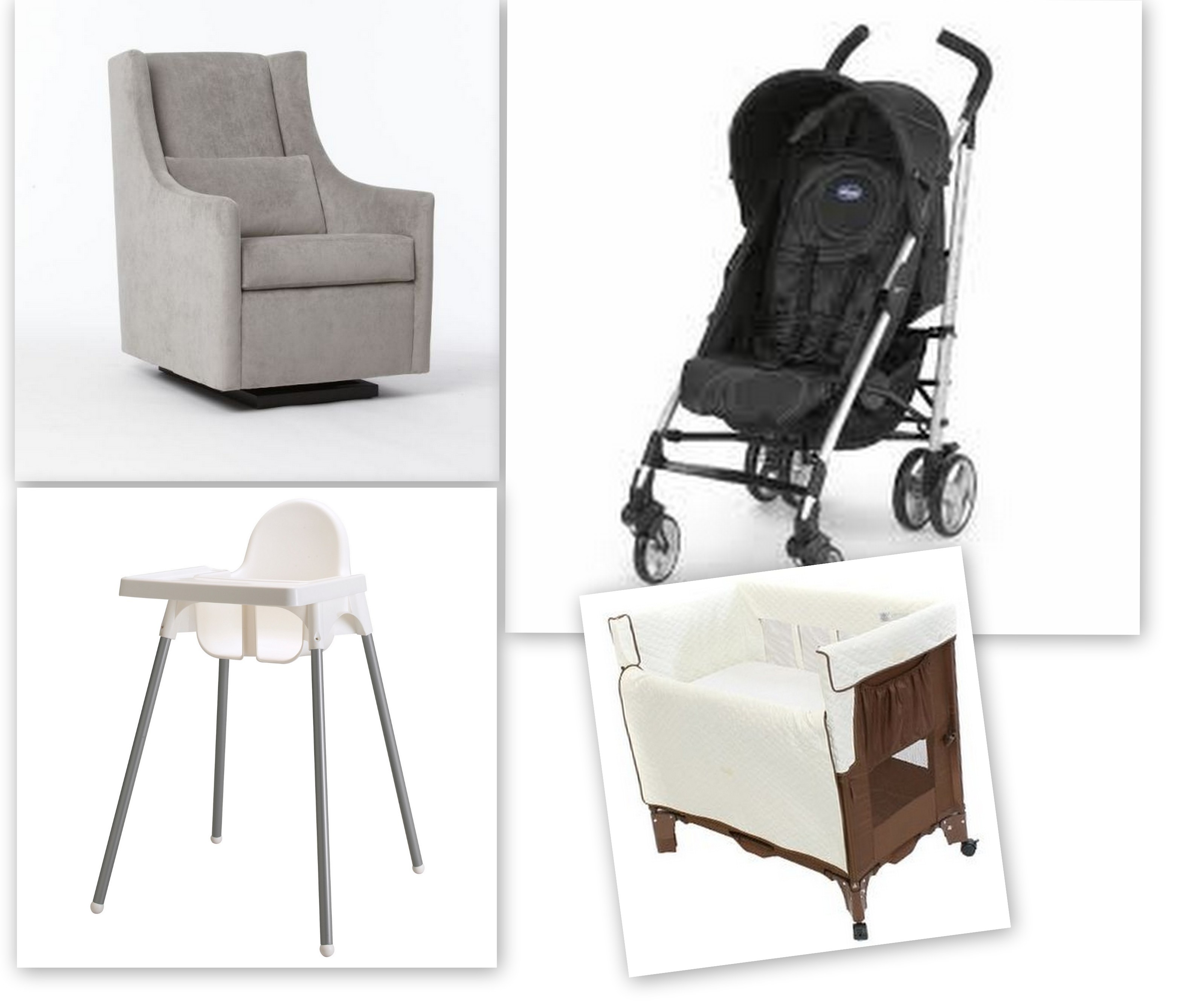 Glider– oh why did I not buy a glider for the first baby?  I spent so much time bouncing and walking and so did my husband.  Lucas loved the glider at Grandma’s house, so next baby I am definitely getting one.  We probably did not have the space in our first little house, but this is a must have for next time.