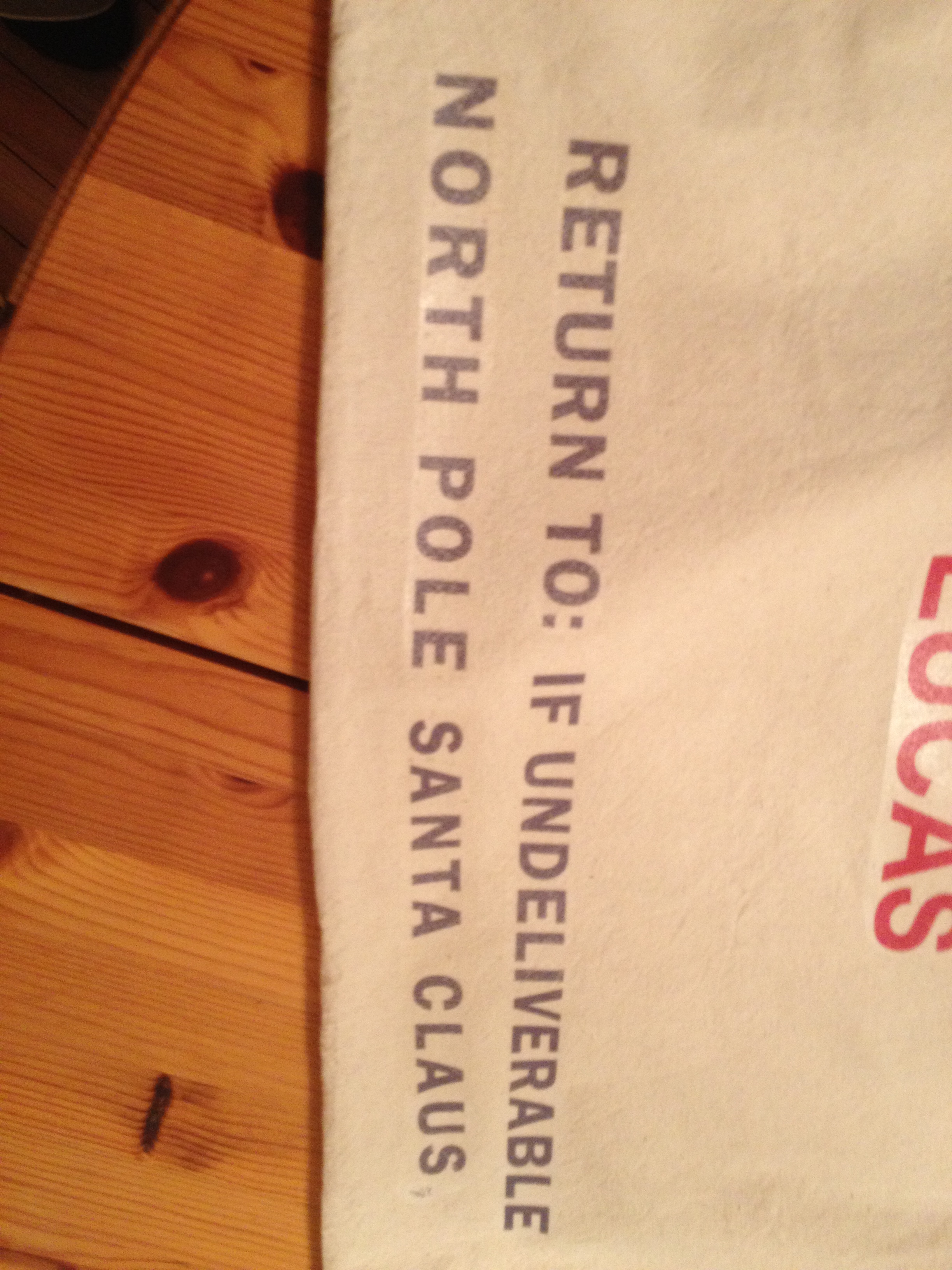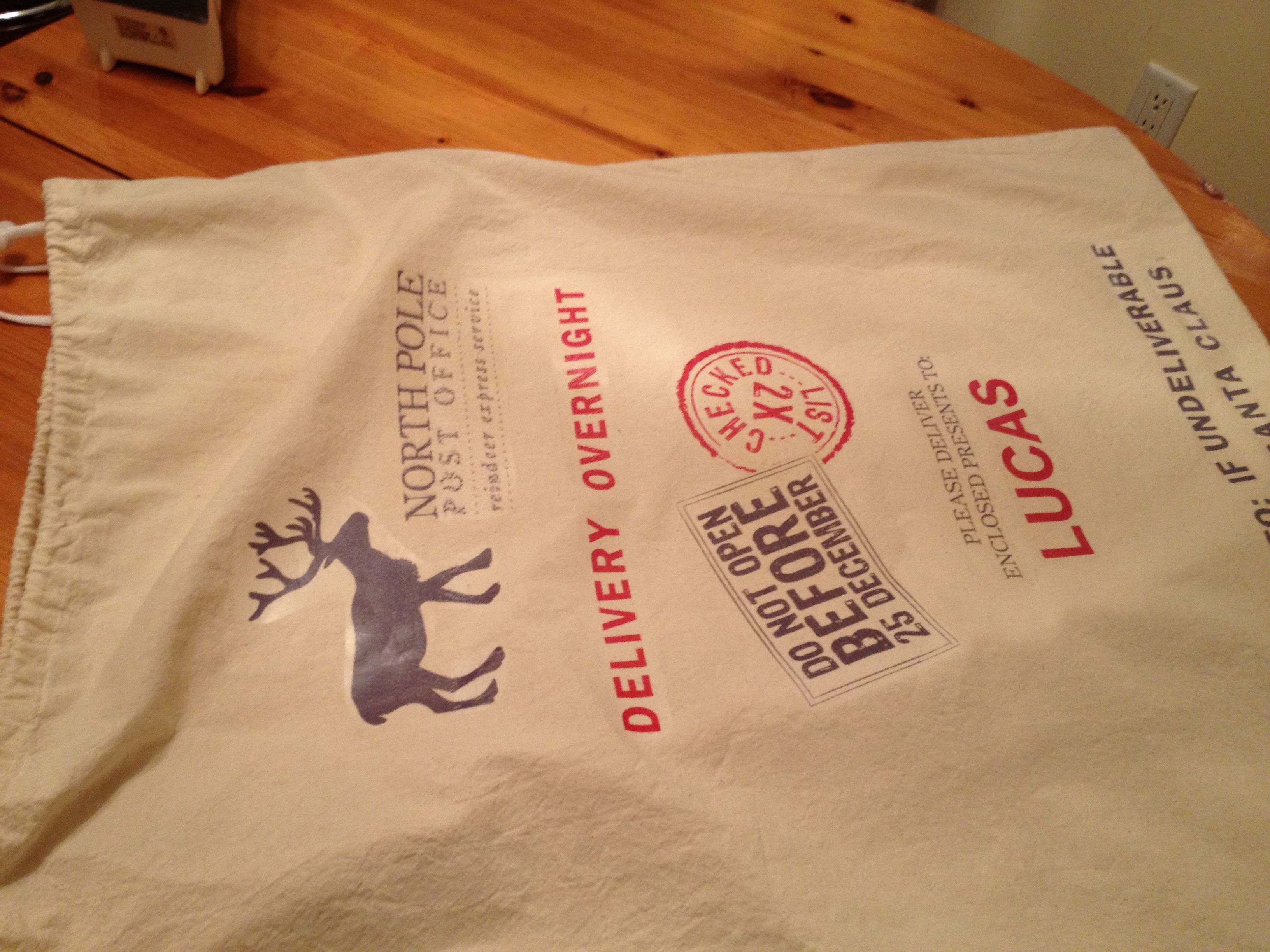 It was the perfect answer to a question I’ve been struggling on. How does Santa get into our new house without a chimney or fireplace? This santa sack could be the answer!  Maybe Santa drops presents off in a sack for each child and leaves it at the front door for parents to bring inside and set under the tree? It could work…